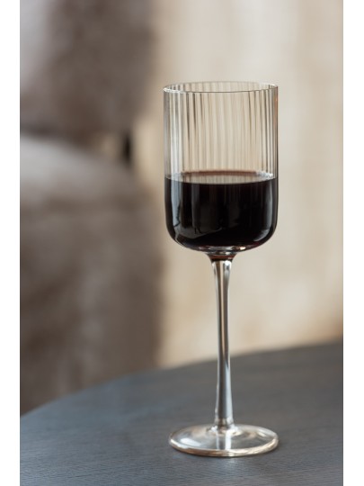 Élégant lot de 6 verres à vin ambrés striés Kyle de la marque Jolipa, au design raffiné et chaleureux. Dimensions H23,5 x D7,5 cm.