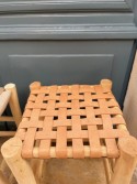 Apportez une touche de luxe et de sophistication à votre intérieur avec ce tabouret en bois et cuir, fait main pour un design unique.