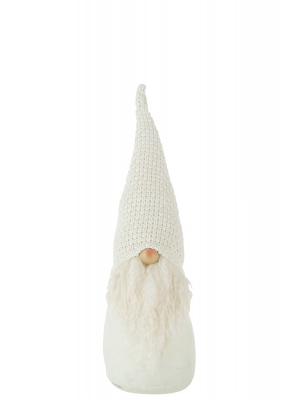 Adorable Gonk blanc en tissu, style scandinave, idéal pour une décoration d’intérieur chaleureuse et festive. Dimensions : H48 x L13,5 cm. Parfait pour Noël ou pour une touche cosy toute l’année.